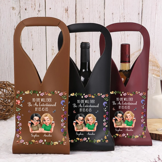 No One Will Ever Be As Entertained By Us As Us Bestie - Personalized Leather Wine Bag