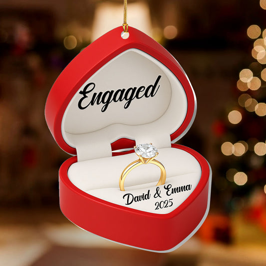Engaged Married Couple Heart Ring Box - Personalized 1-Layer Acrylic Ornament