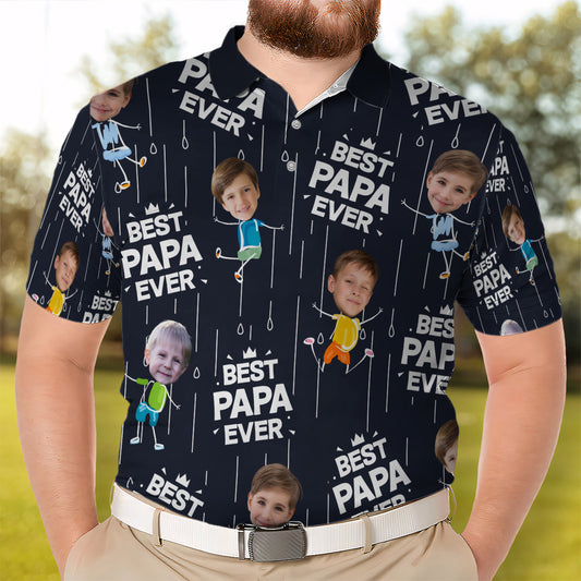 Custom Photo Best Papa Grandpa Ever - Personalized Polo Shirt