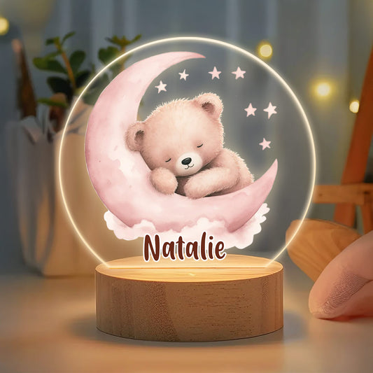 Moon Star Teddy Bear - Personalized Round Base LED Night Light