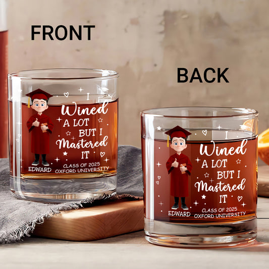 I Wined A Lot But I Mastered It - Personalized Round Whiskey Glass