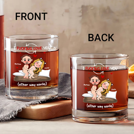 I Love You (Either Way Works) - Personalized Round Whiskey Glass