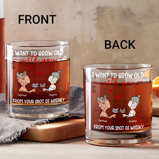 I Want To Grow Old With You - Personalized Round Whiskey Glass