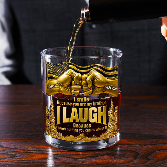 I Laugh Because You Are My Brother - Personalized Round Whiskey Glass