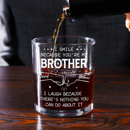 I Smile Because You Are My Brother - Personalized Round Whiskey Glass