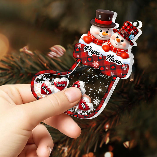 Christmas Snowman Grandparents And Grandkids Sock - Personalized 3 Layered Christmas Shaker Ornament