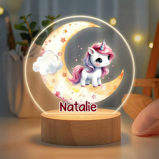Fantasy Unicorn Dreamy Moon - Personalized Round Base LED Night Light