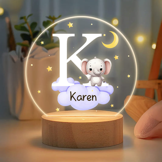 Fantasy Star Cloud Animal Initial Name - Personalized Round Base LED Night Light