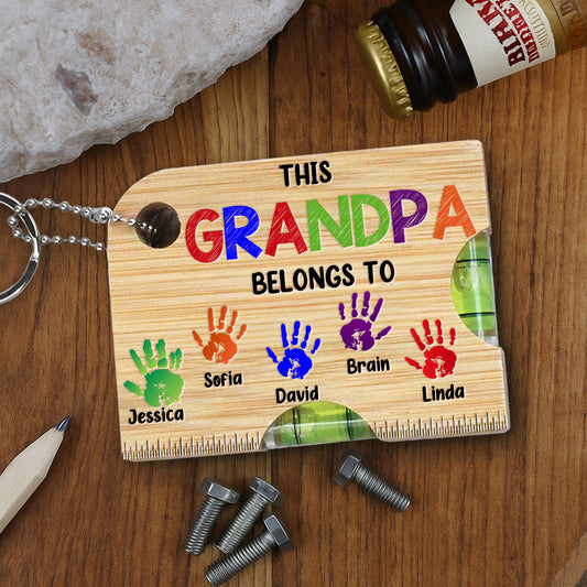 This Dad Belongs To - Personalized Spirit Level Bottle Opener Keyring