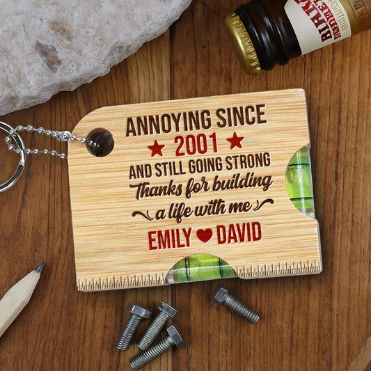 Thanks For Building A Life With Me - Personalized Spirit Level Bottle Opener Keyring