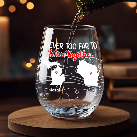 Never Too Far To Drink - Personalized Stemless Wine Glass