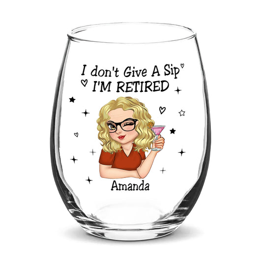 I Don't Give A Sip I'm Retired - Personalized Stemless Wine Glass