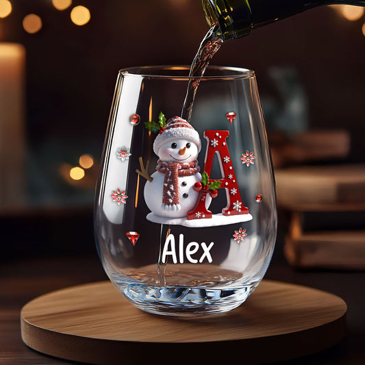Snowman Merry Christmas For Family And Friends - Personalized Stemless Wine Glass