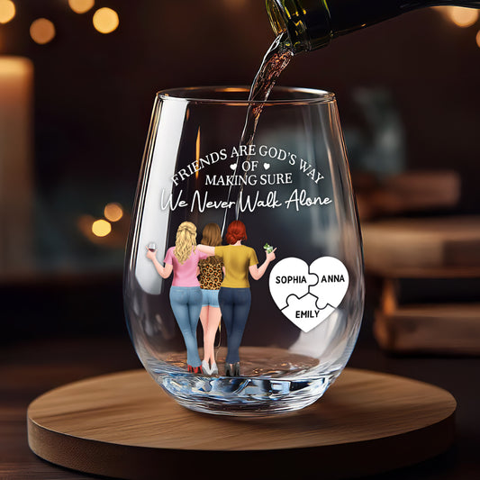 Friends Are God's Way Of Making Sure We Never Walk Alone - Personalized Stemless Wine Glass