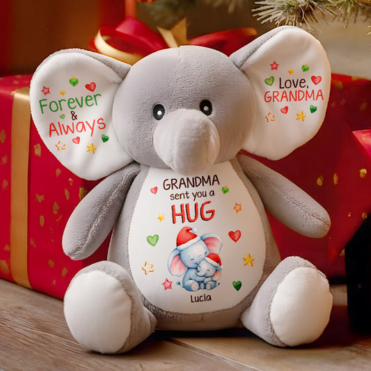 Grandma Sending You A Hug Christmas - Personalized Stuffed Elephant
