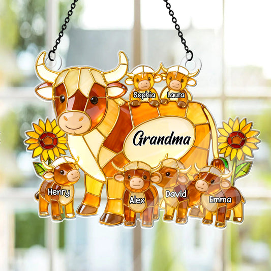 Mama Cow Gift For Mom Grandma - Personalized Acrylic Suncatcher