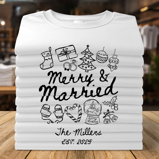 Merry & Married First Christmas Couple - Personalized 2D Unisex T-shirt
