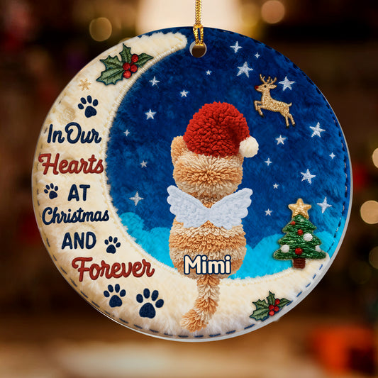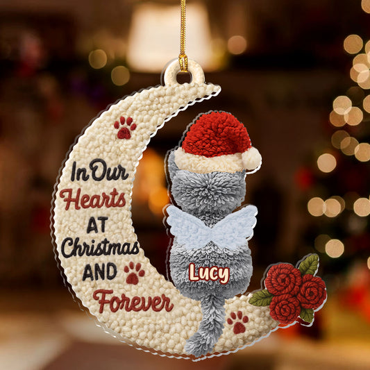 In Our Hearts At Christmas And Forever Cat Lover - Personalized 1-Layer Acrylic Ornament