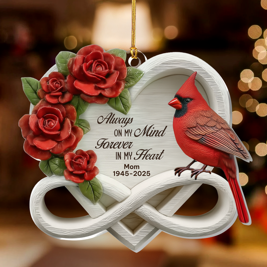 Cardinal Memory Heart - Personalized 1-Layer Acrylic Ornament