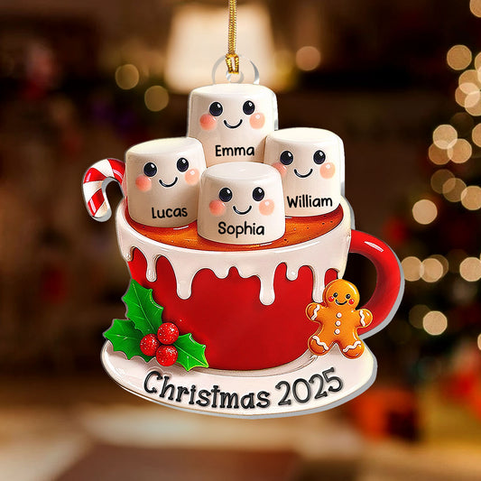 Marshmallow Christmas Hot Cocoa Couple New Married Family - Personalized 1-Layer Acrylic Ornament