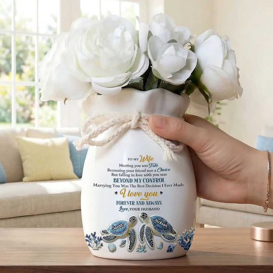 From Fate To Forever Love - Personalized Flower Vase With Ribbon