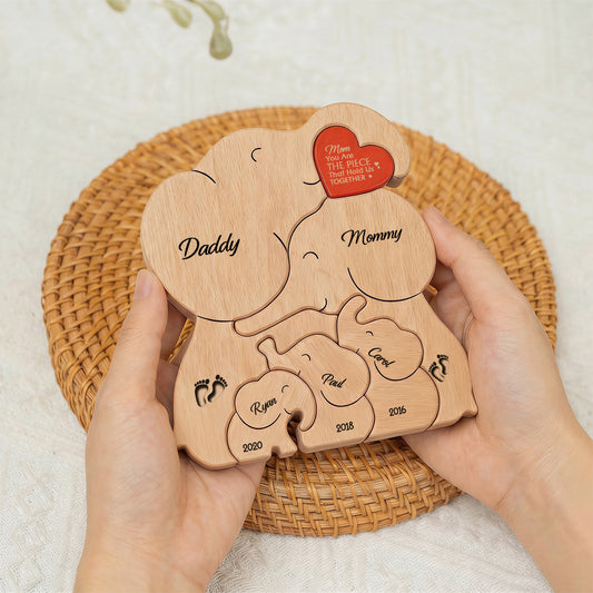 Mom You Are The Piece That Holds Us Together - Personalized Elephant Family Wooden Puzzle