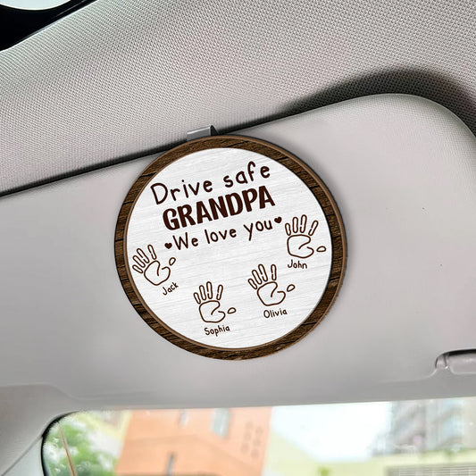 Drive Safe Grandpa We Love You Hand Prints - Personalized Car Visor Clip