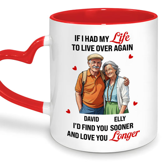 Love You Longer Gift For Husband And WIfe - Personalized Heart Handle Mug