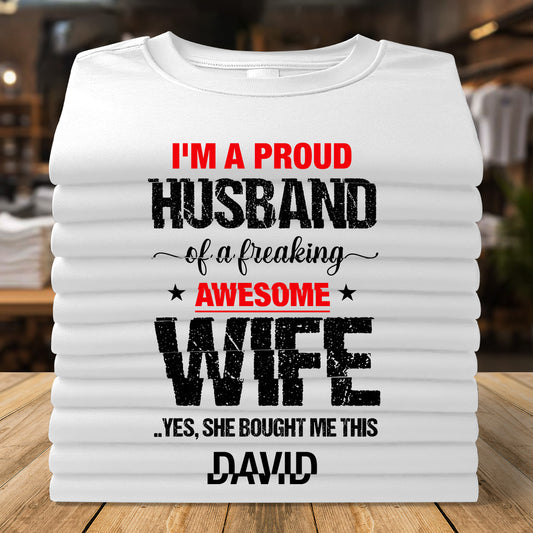 Proud Husband Of A Freaking Awesome Wife - Personalized 2D Unisex T-shirt