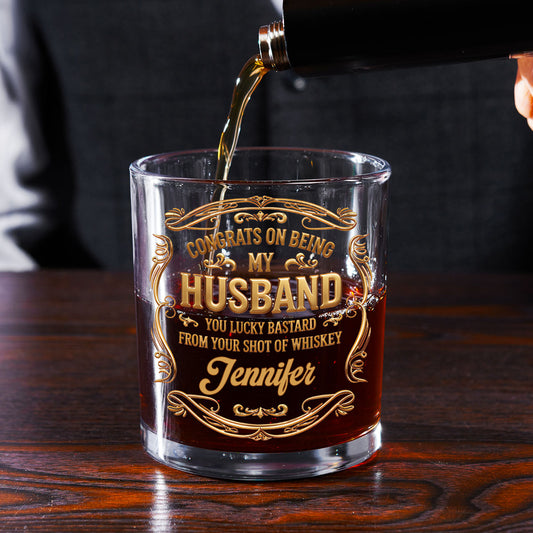 Congrats On Being My Husband - Personalized Round Whiskey Glass