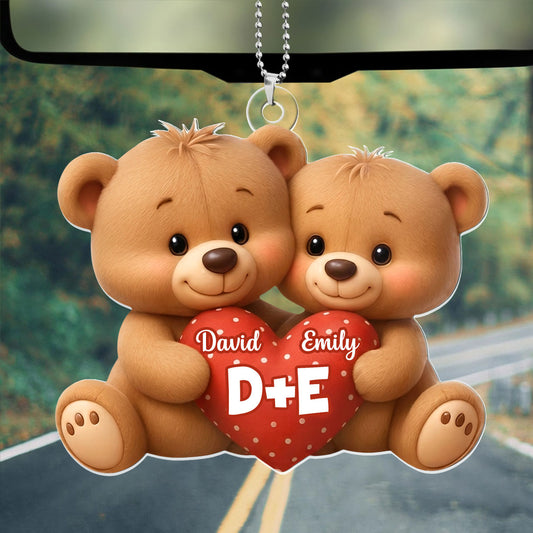 Bear Couple Holding Heart - Personalized Car Acrylic Hanging Ornament
