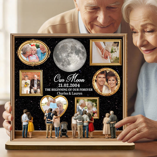 Eternal Embrace On The Crescent Moon - Personalized 2-Layer Wood Plaque With Flat Base