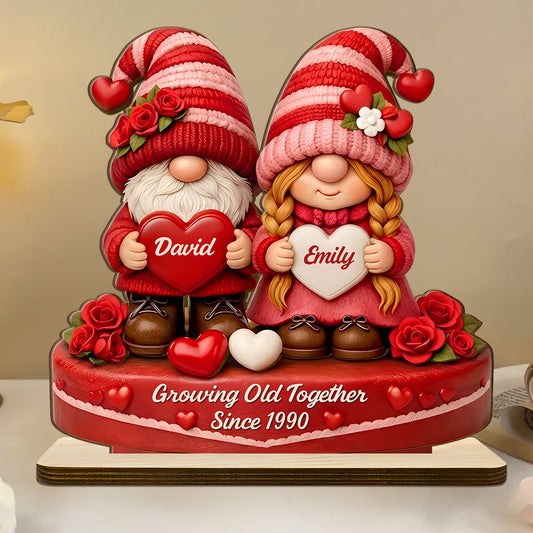 Romantic Gnome Couple - Personalized 2-Layer Wood Plaque With Flat Base
