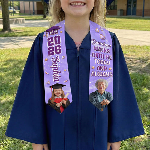 Grandpa Walks With Me Today And Always - Personalized Kid Graduation Stole