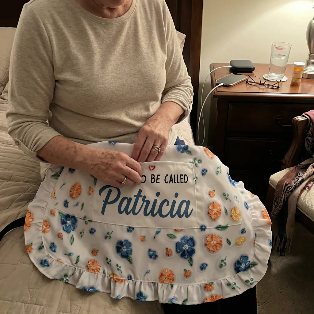 She was so excited when she saw her name on it! She looks adorable wearing it in the kitchen.