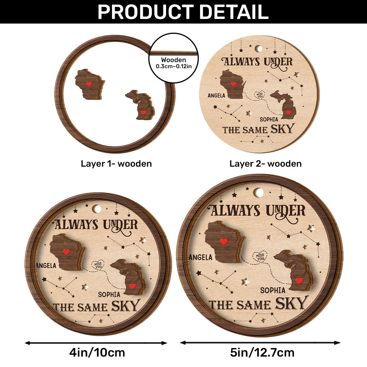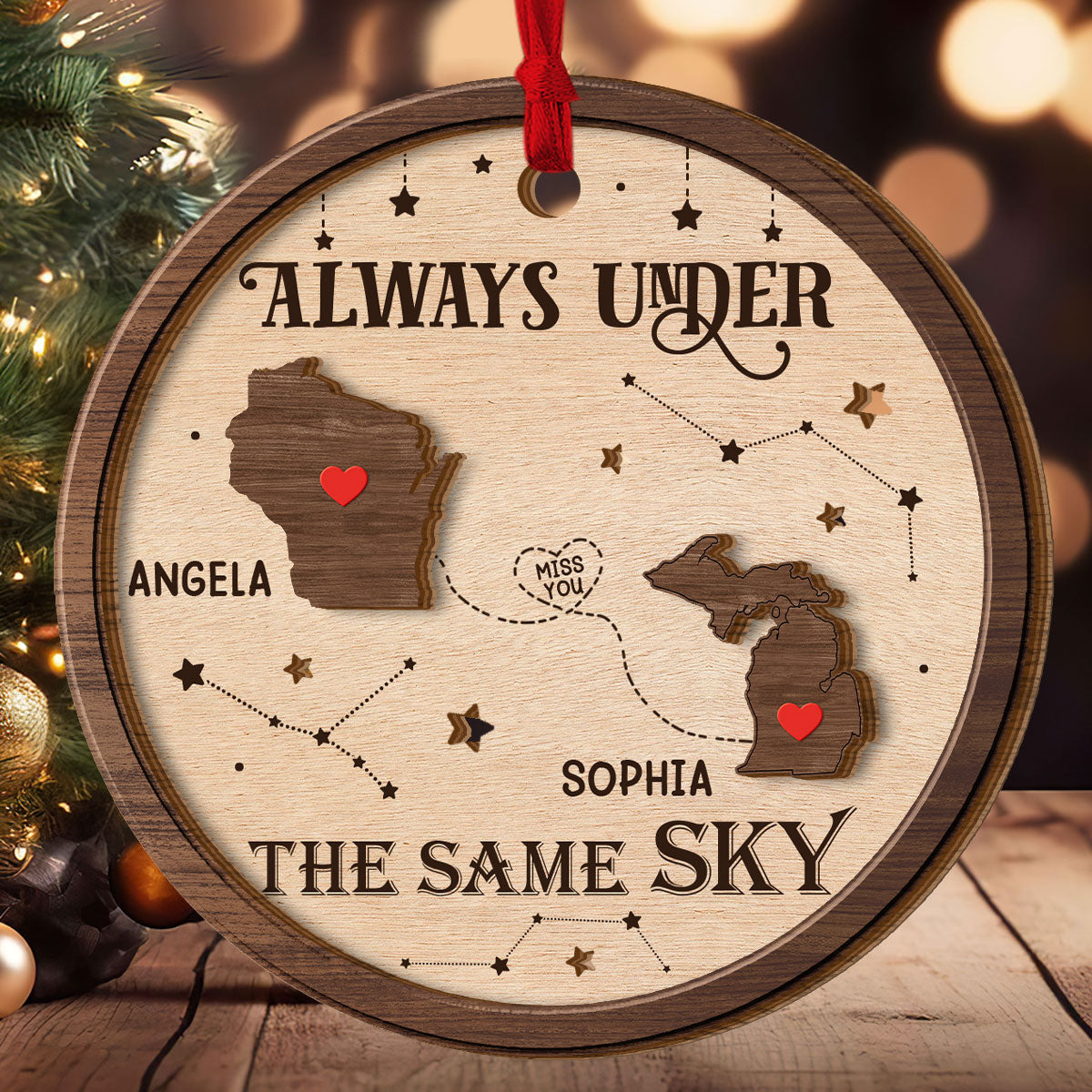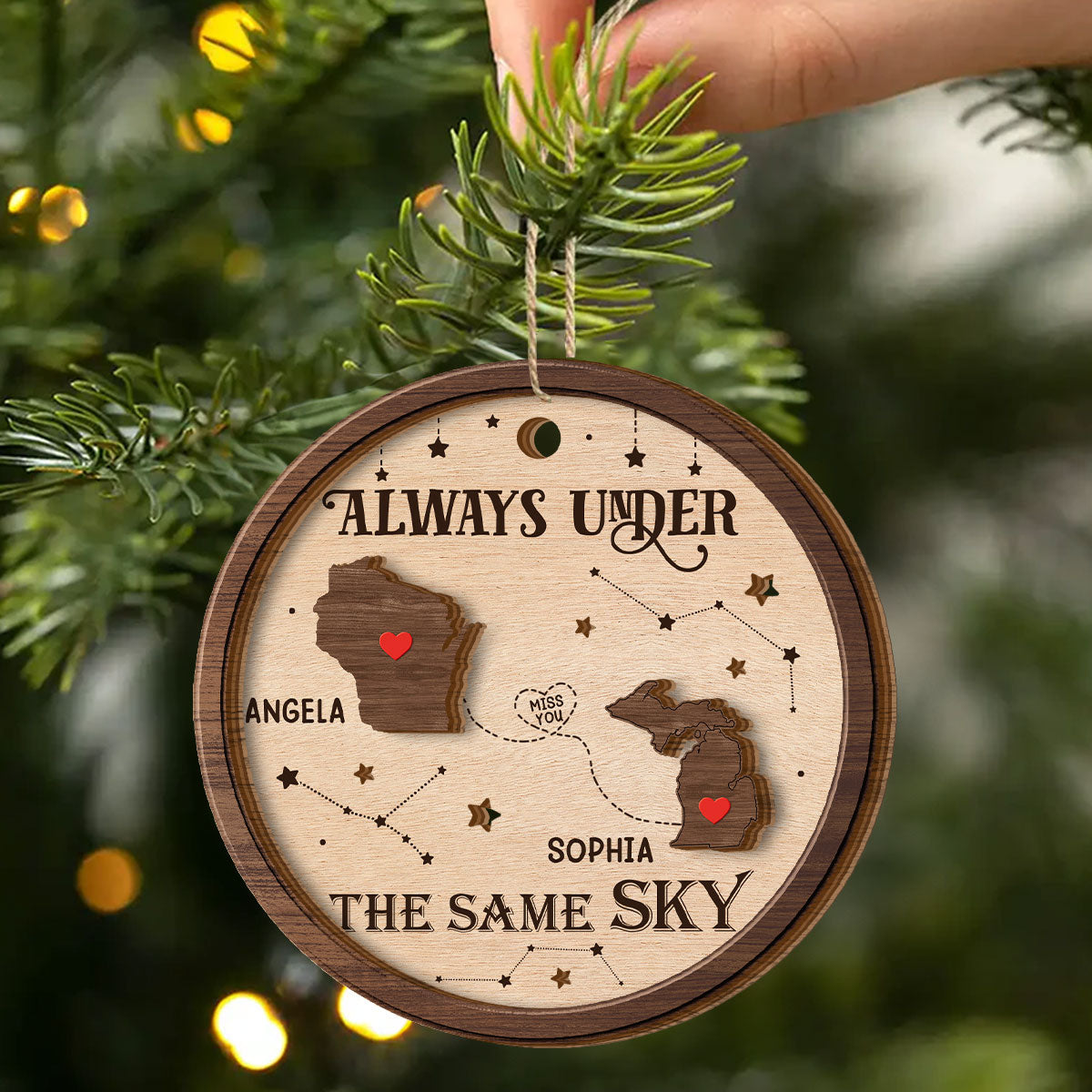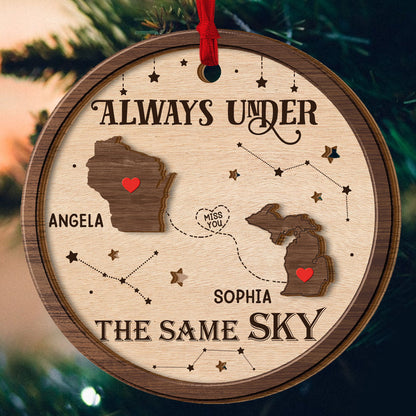 Always Under The Same Sky - Personalized 2-Layered Wooden Ornament