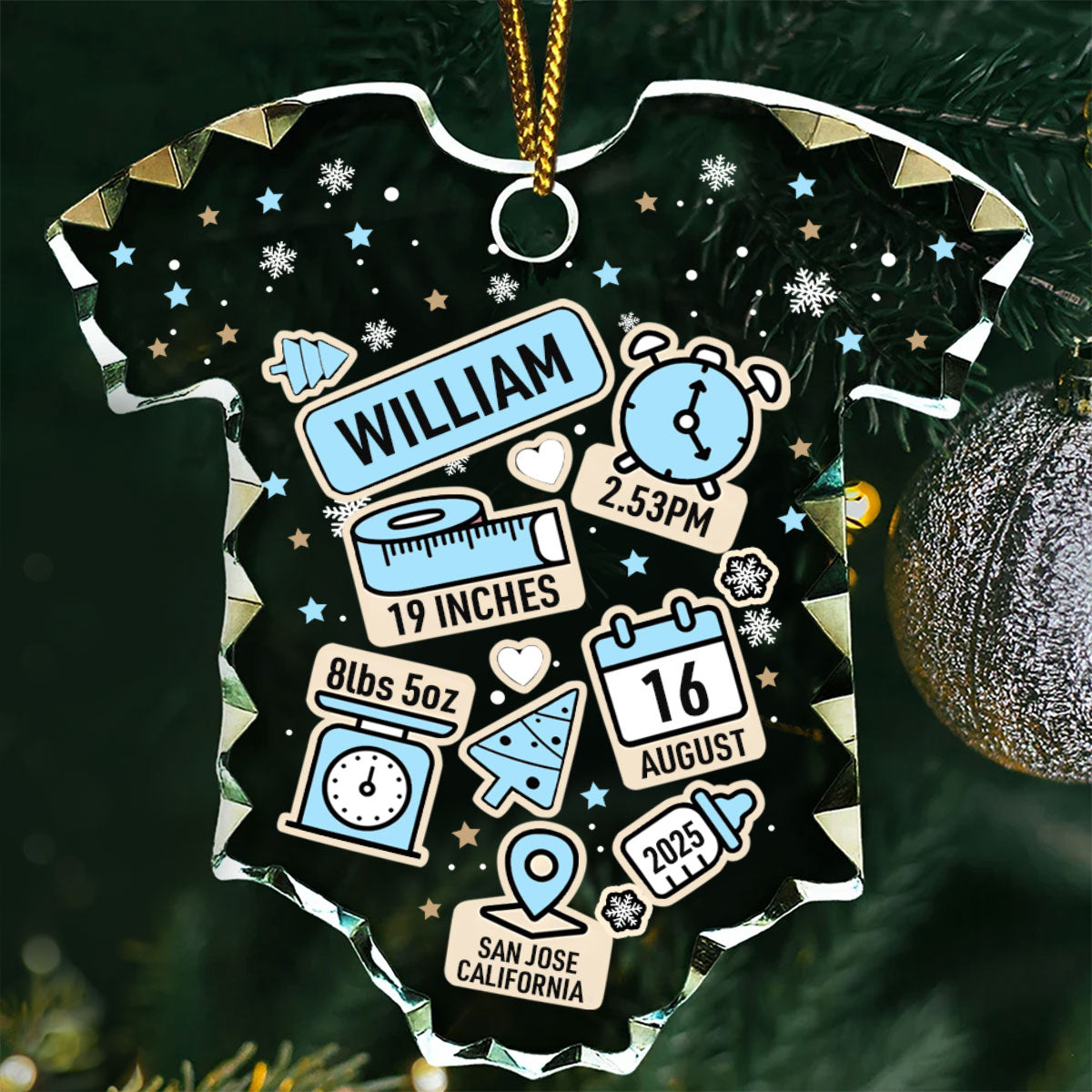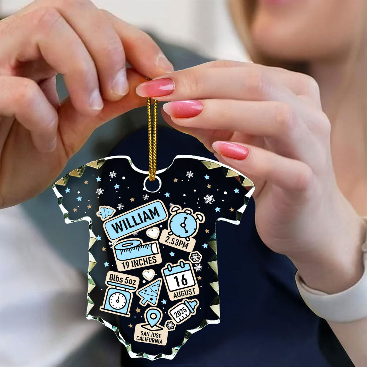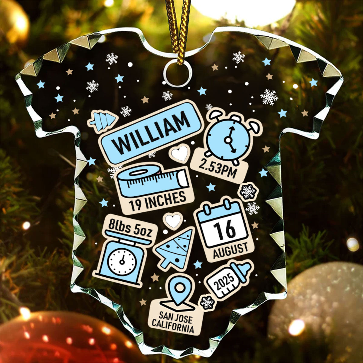 Package Includes: 01 onesie-shaped glass ornament and rope included for hanging.