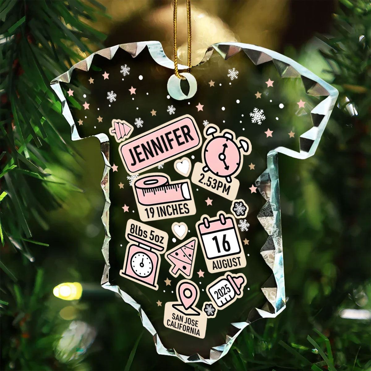 Celebrate your baby’s first magical Christmas with Our Onesie Shaped Glass Ornament. Perfect for new moms, new dads, and families with a new baby, this charming ornament is a gift for Christmas, Birthday, Mother’s Day, Father’s Day, or any special family occasion. Its adorable onesie shape captures the joy and excitement of welcoming a little one.