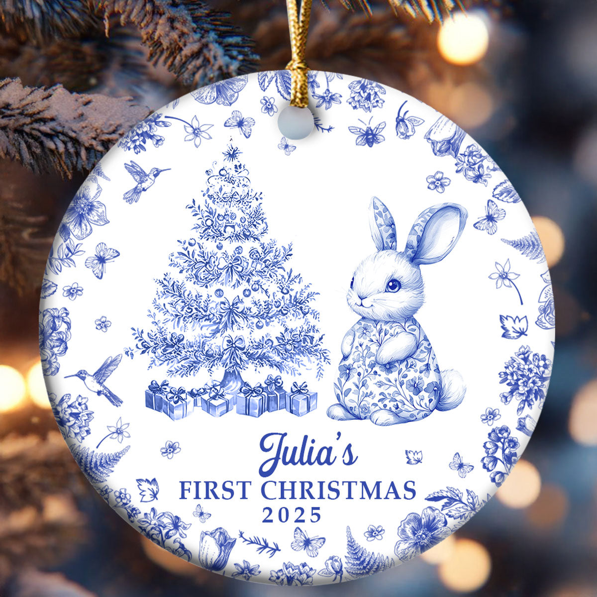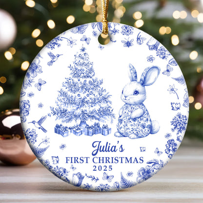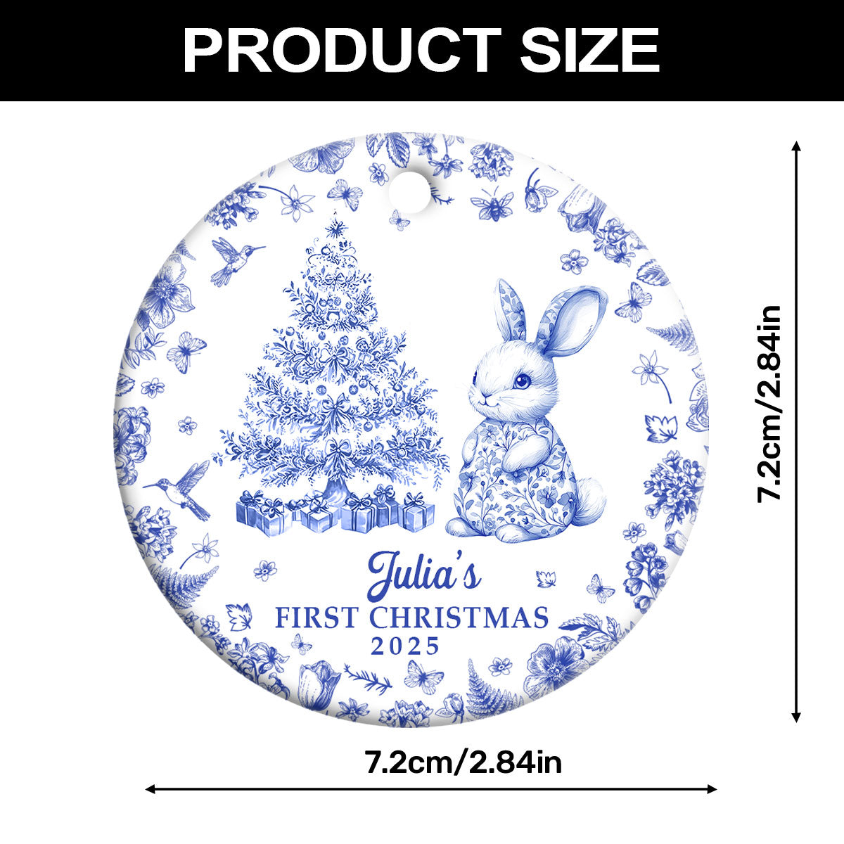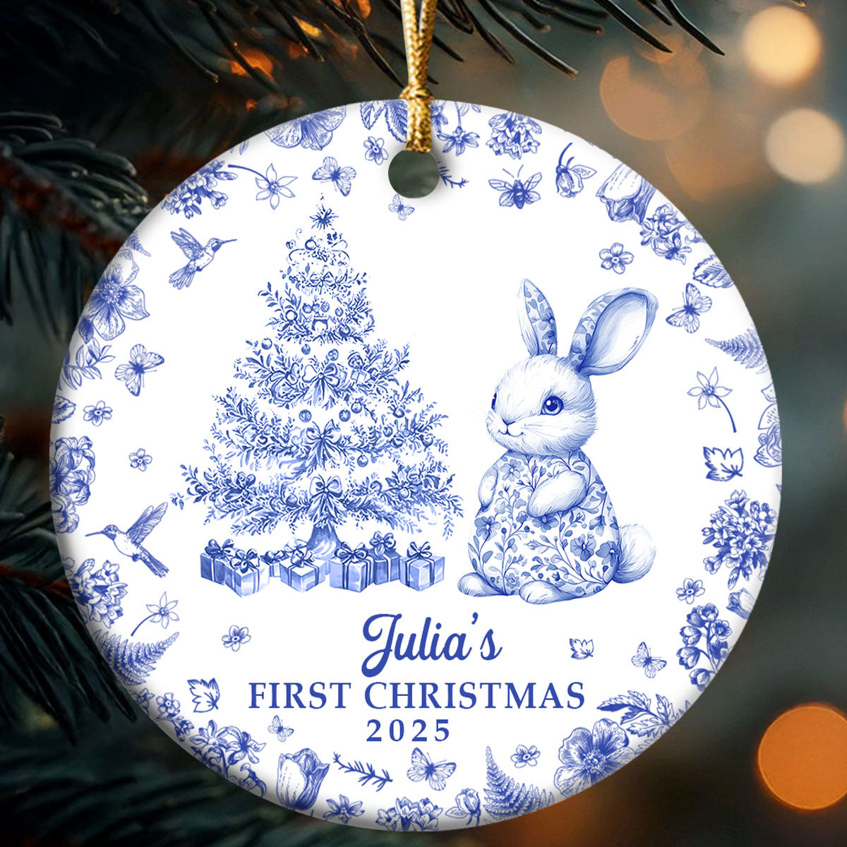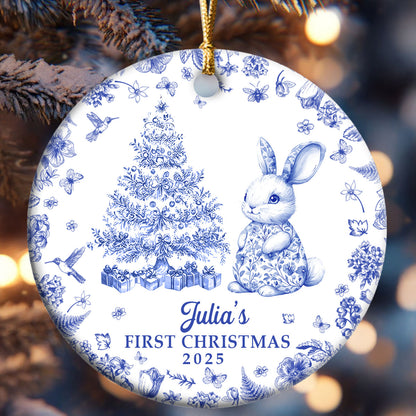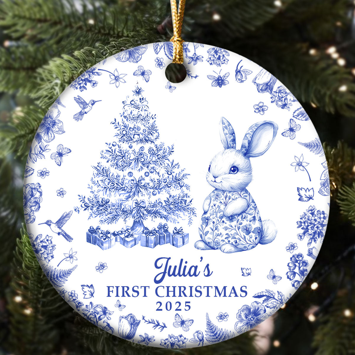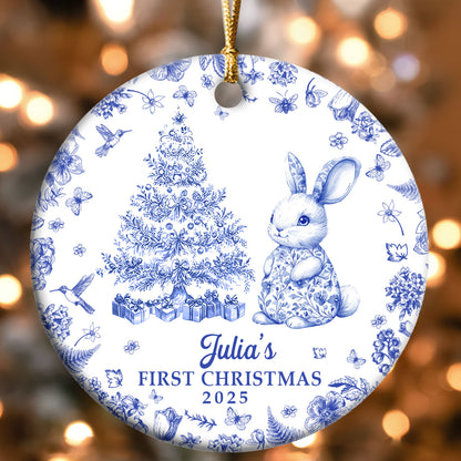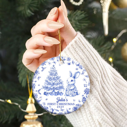 Baby's First Christmas Toile De Jouy - Personalized Round Shaped Ceramic Ornament