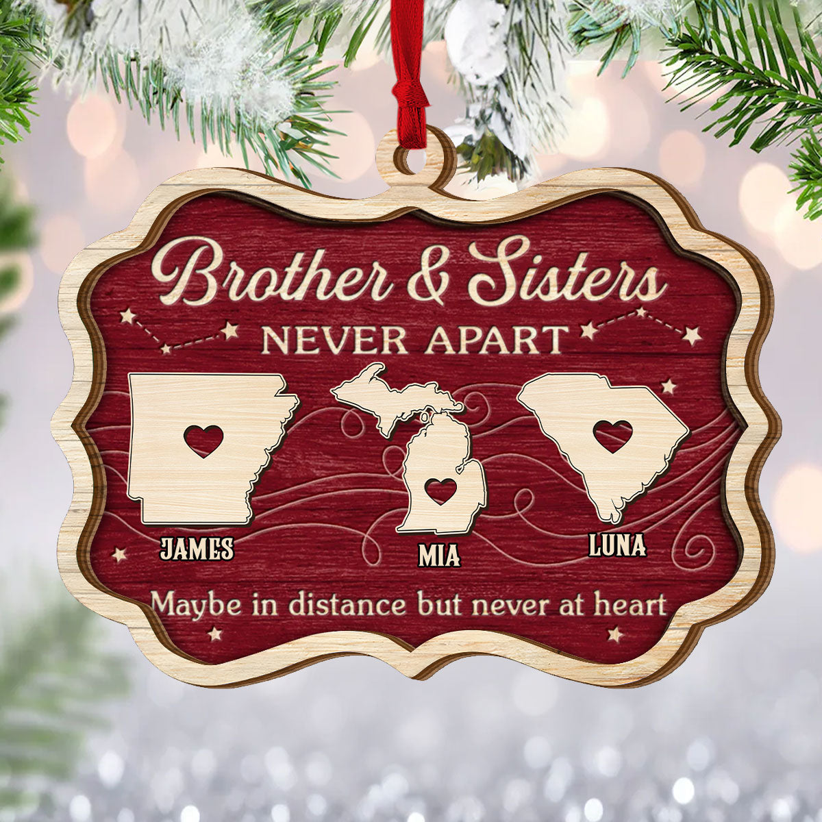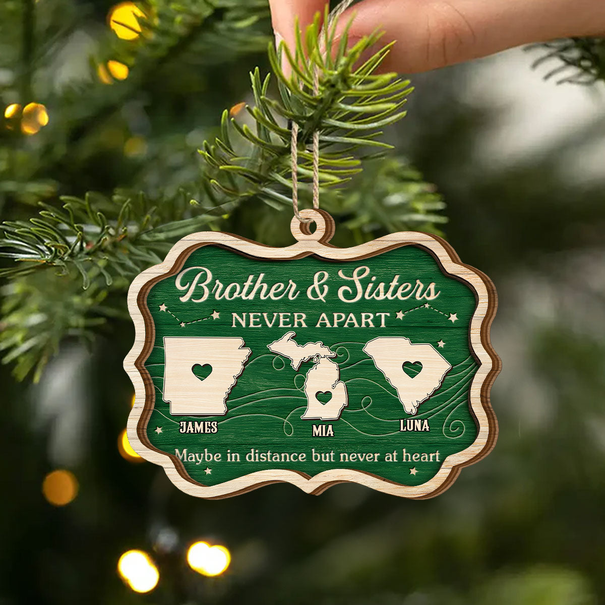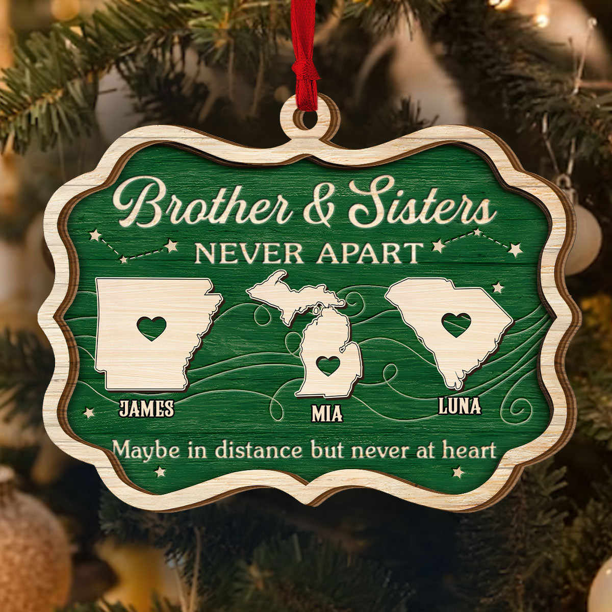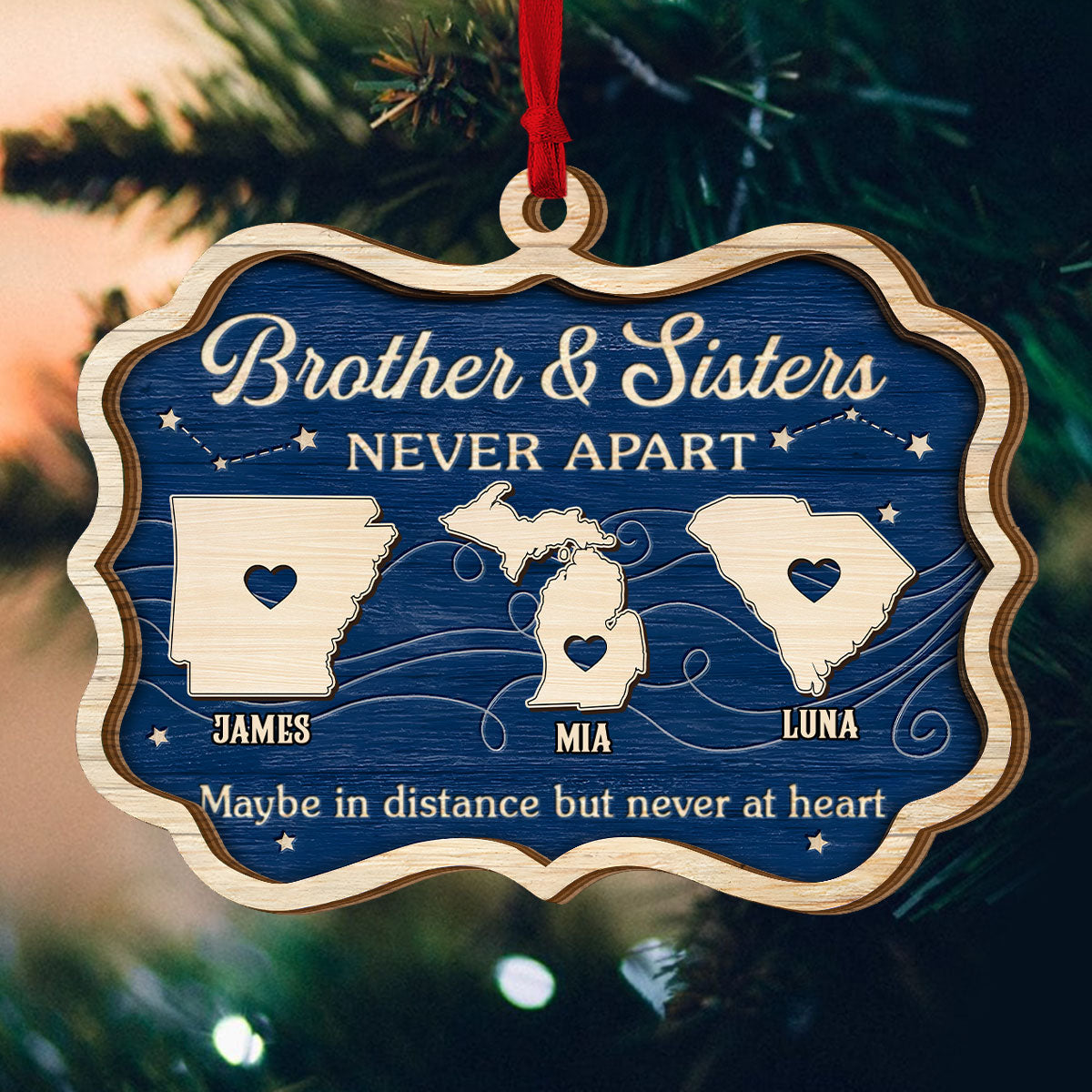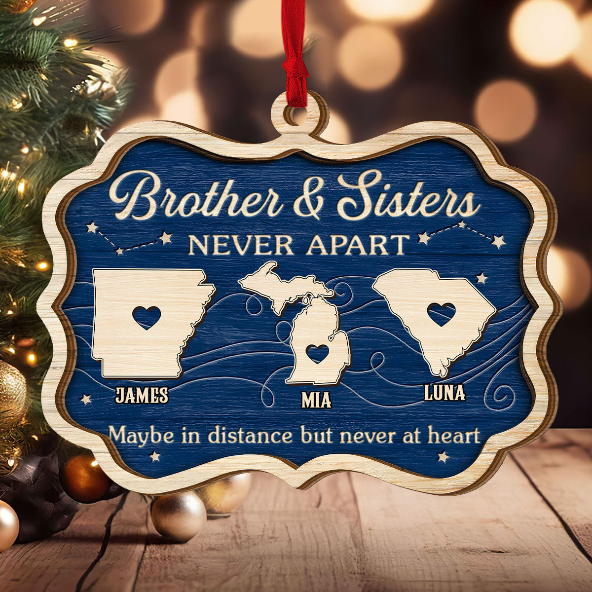 Brothers And Sisters Never Apart - Personalized 2-Layered Wooden Ornament