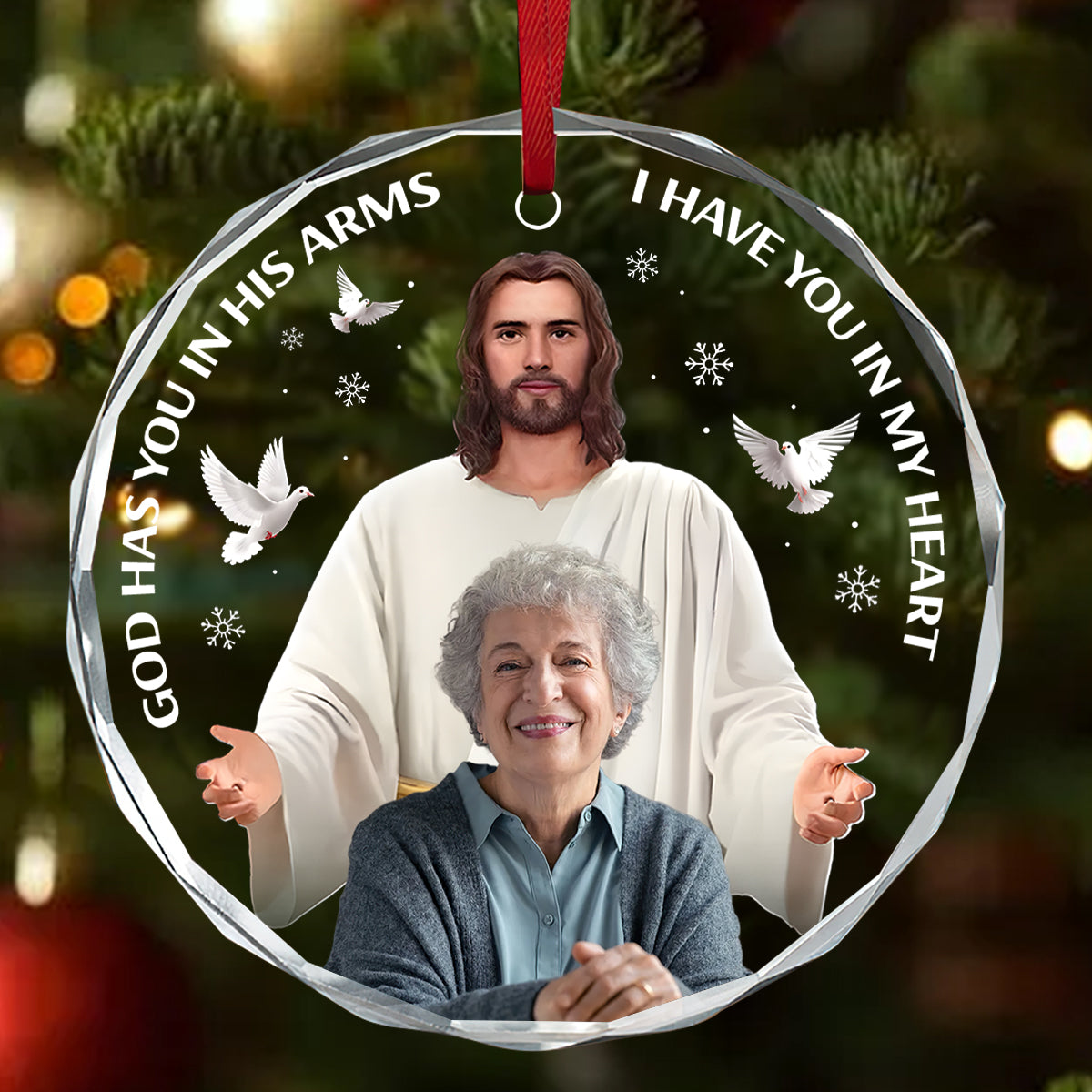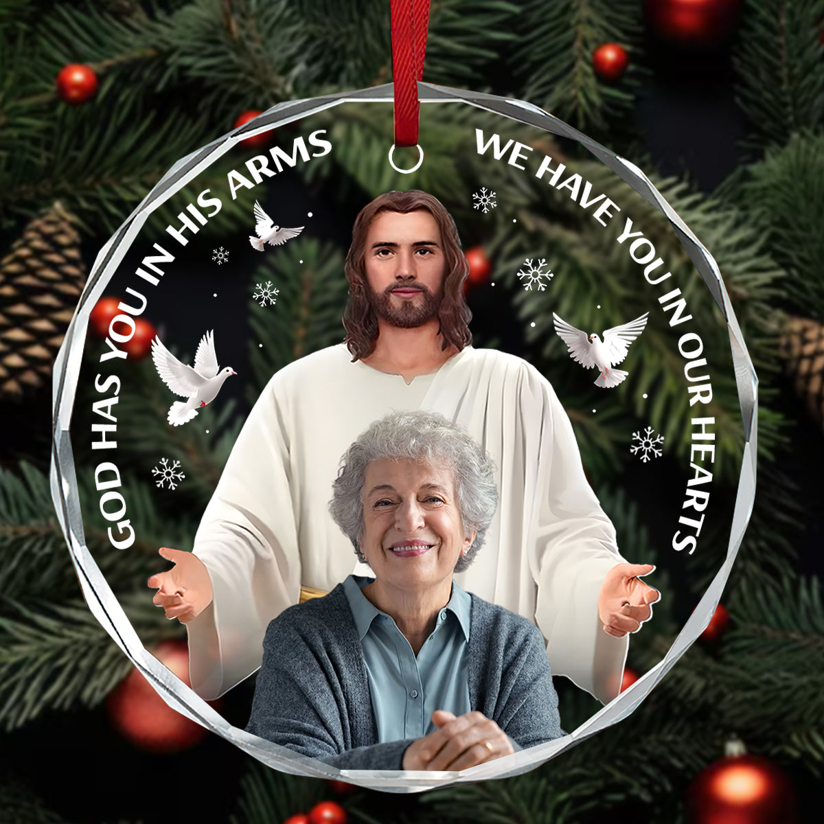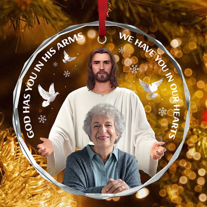 God Has You In His Arms - Personalized Round Shaped Glass Ornament