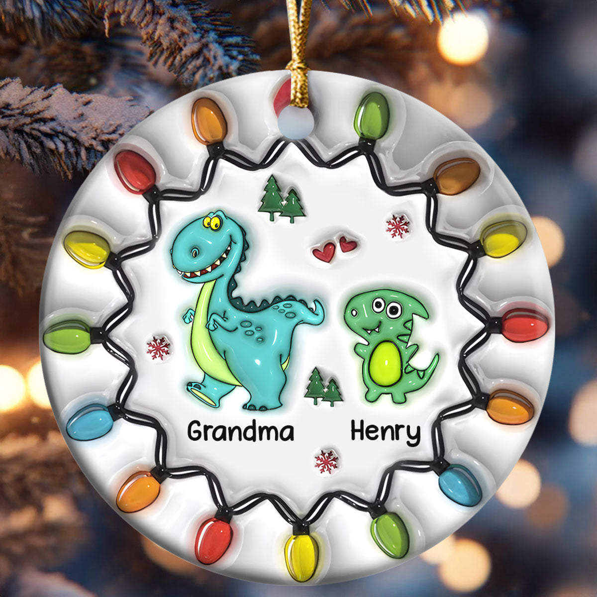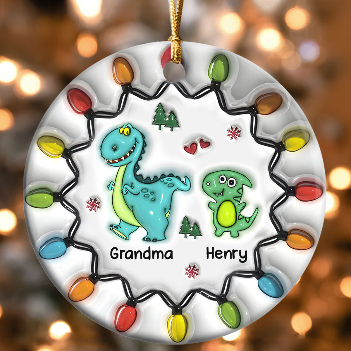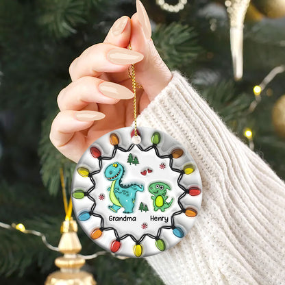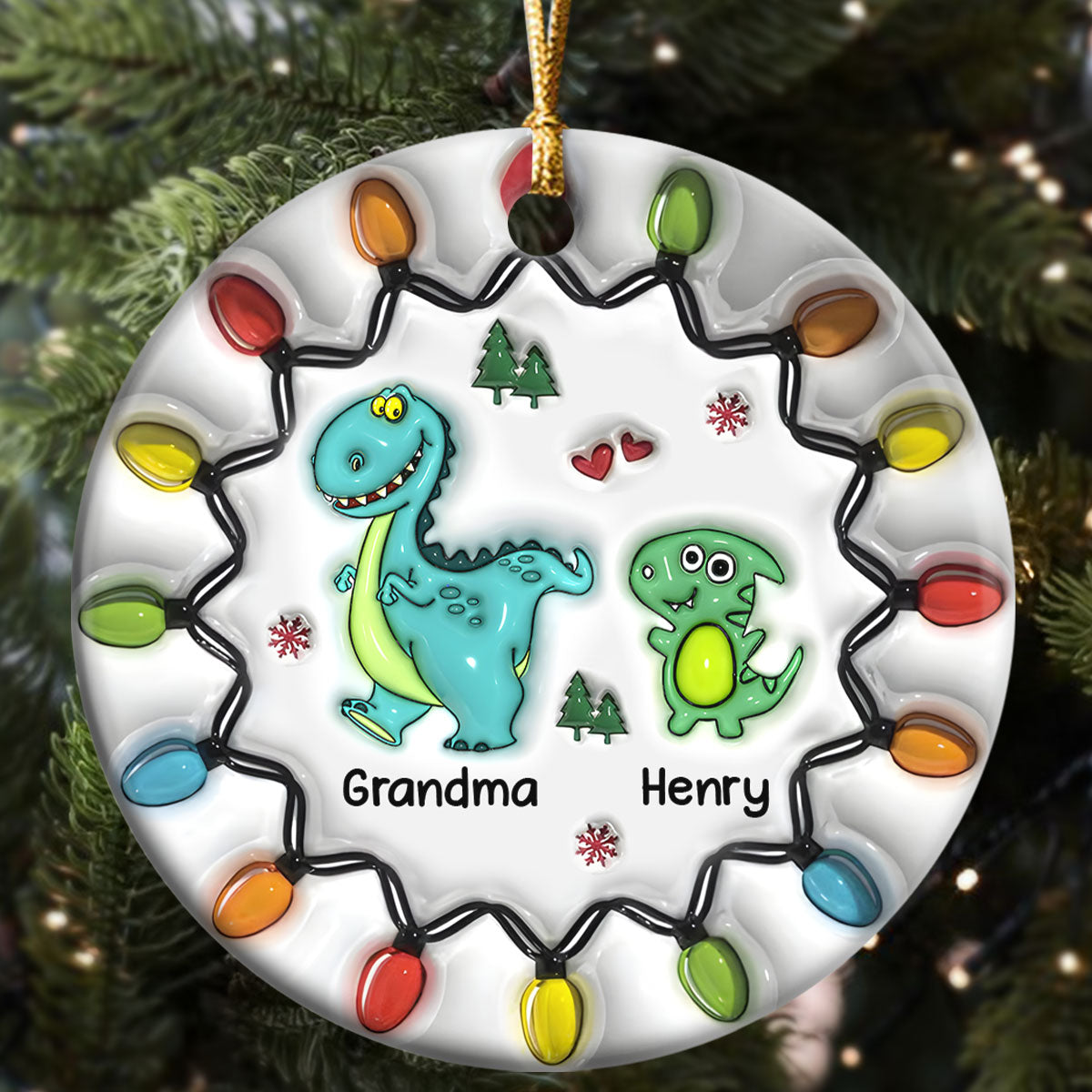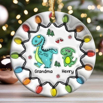 Grandma & Me Dino Adventure - Personalized Round Shaped Ceramic Ornament