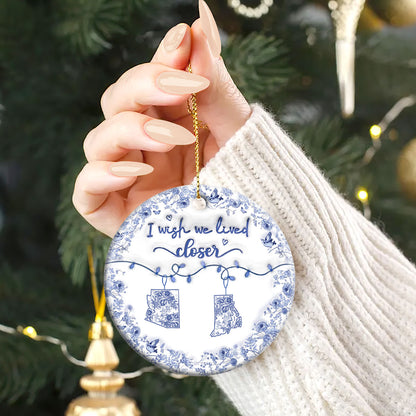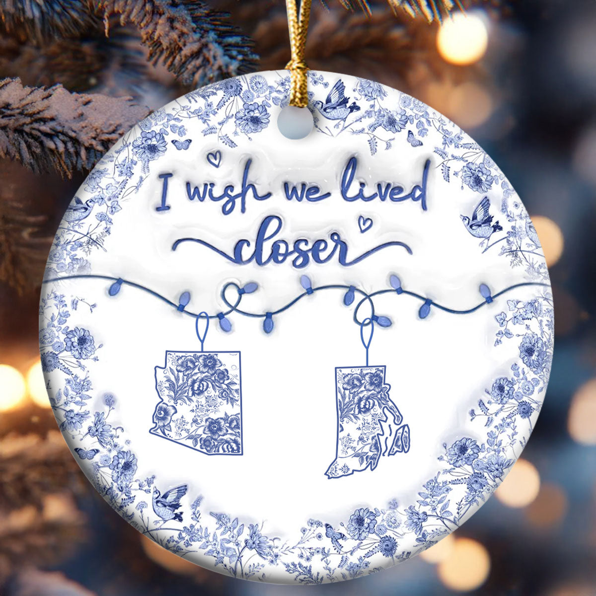 I Wish We Lived Closer - Personalized Round Shaped Ceramic Ornament