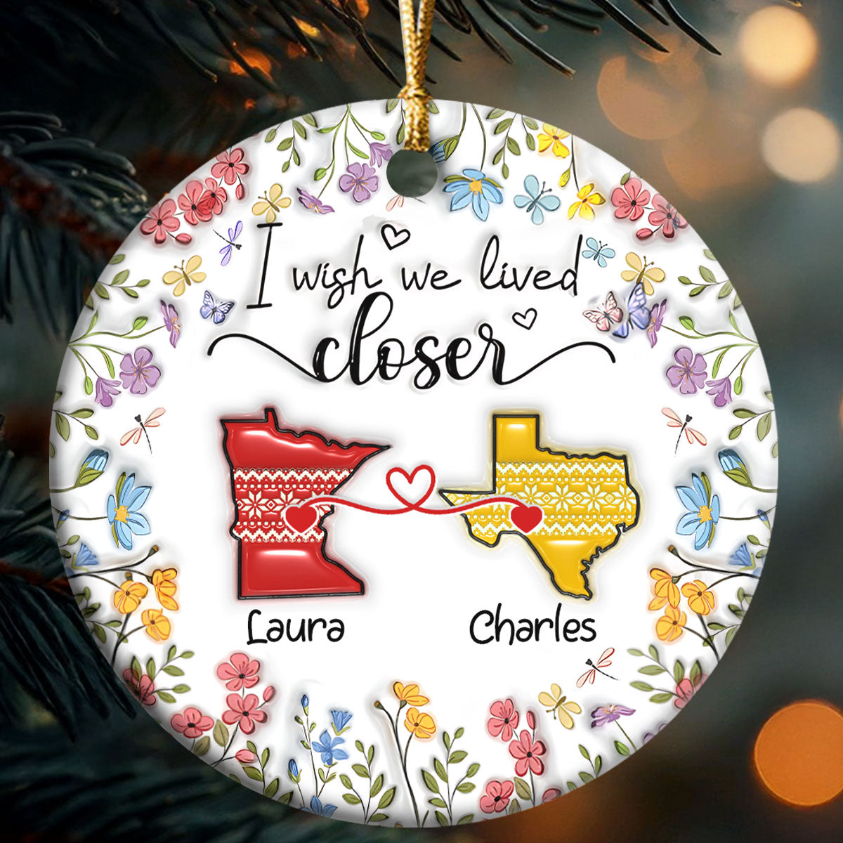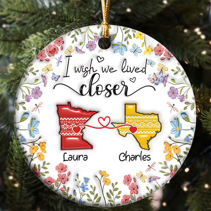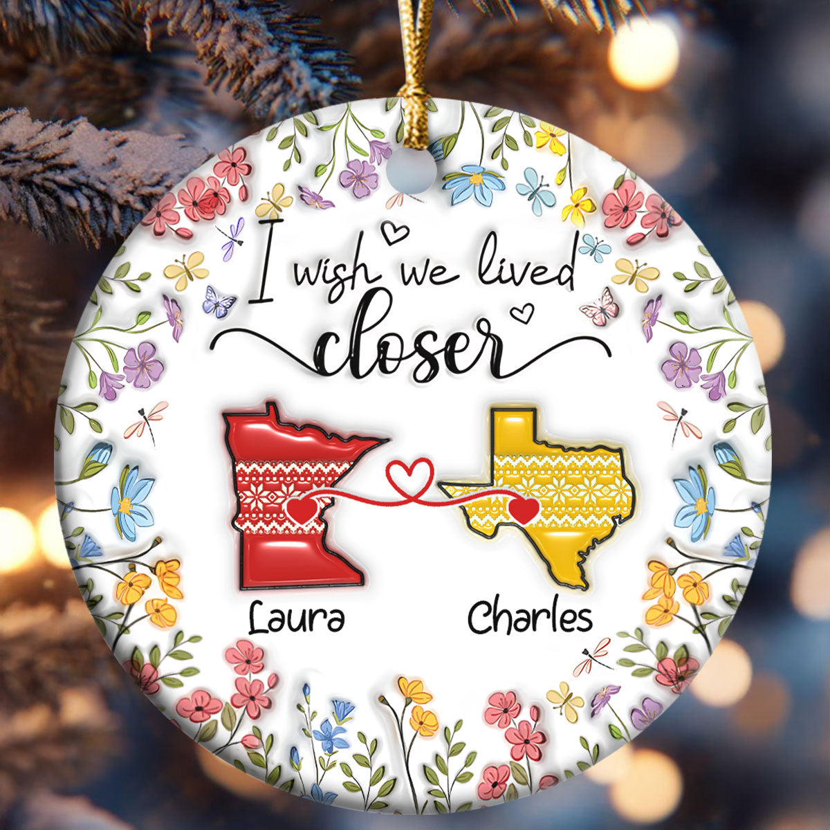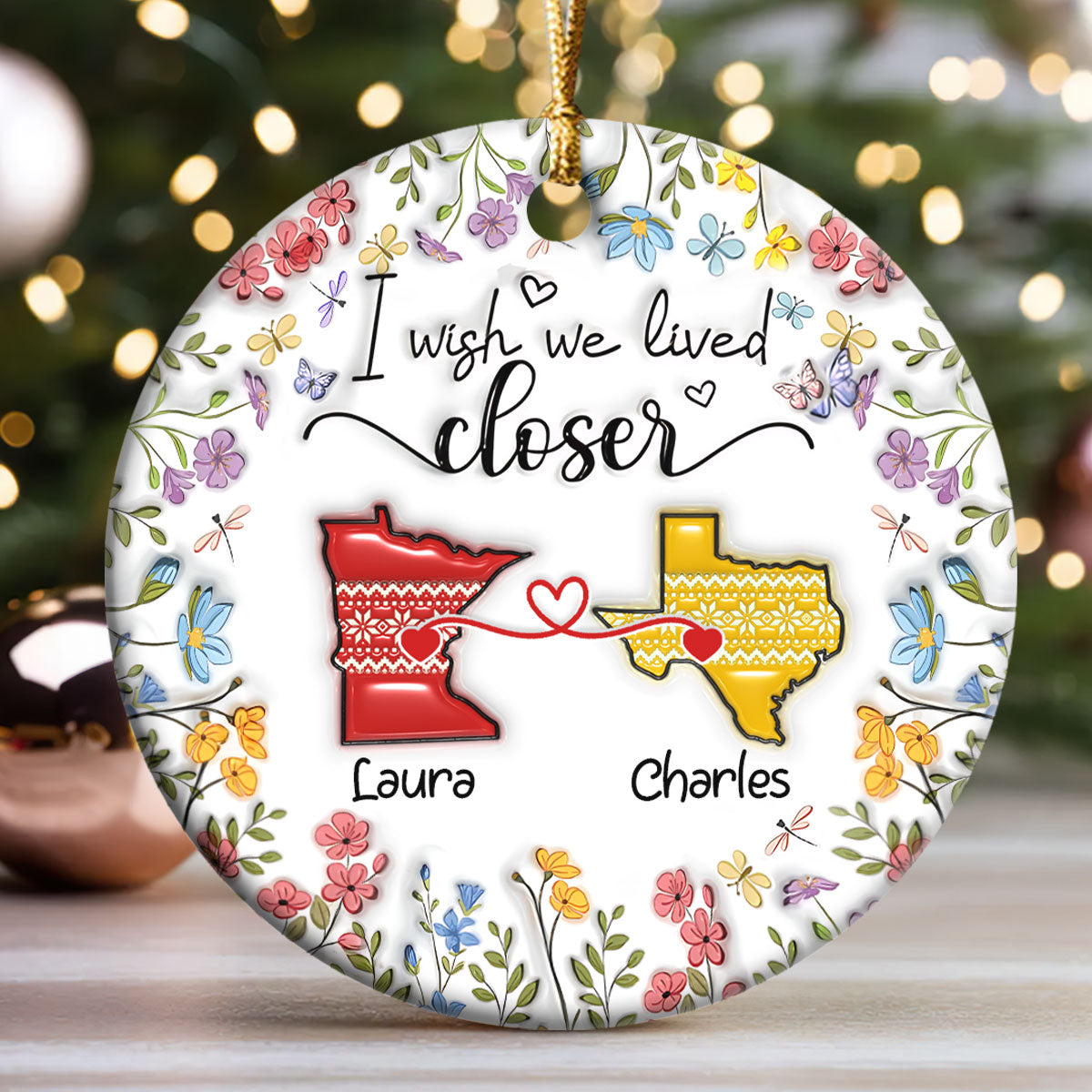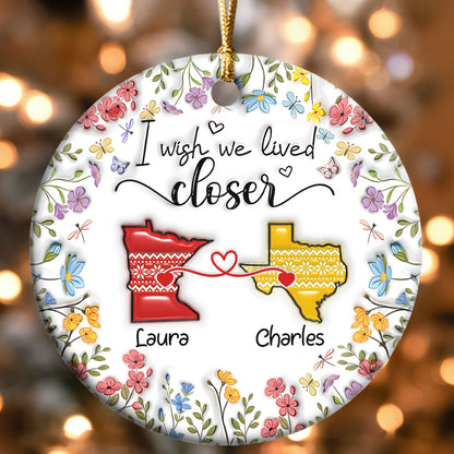 I Wish We Lived Closer - Personalized Round Shaped Ceramic Ornament