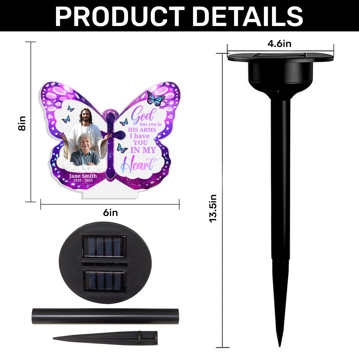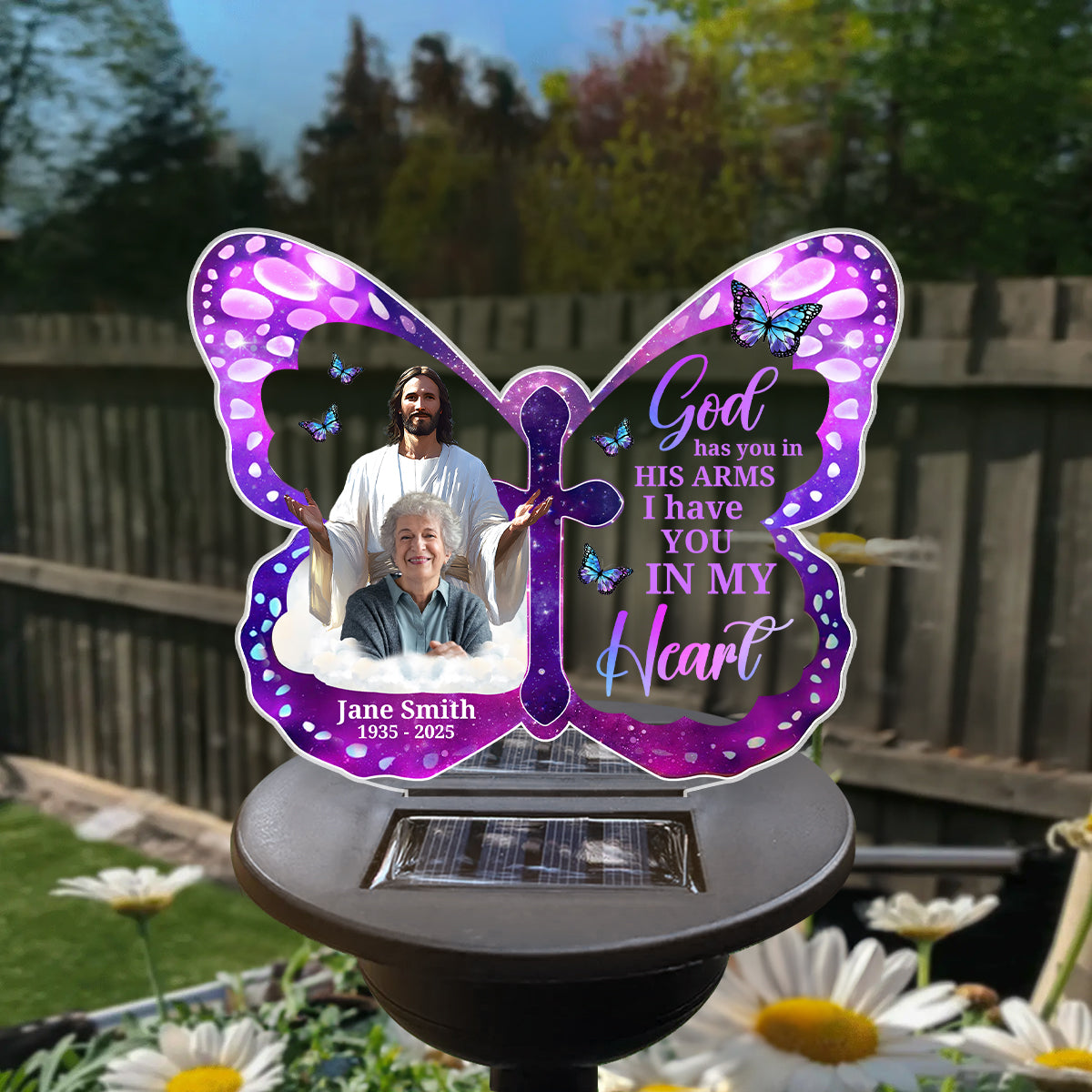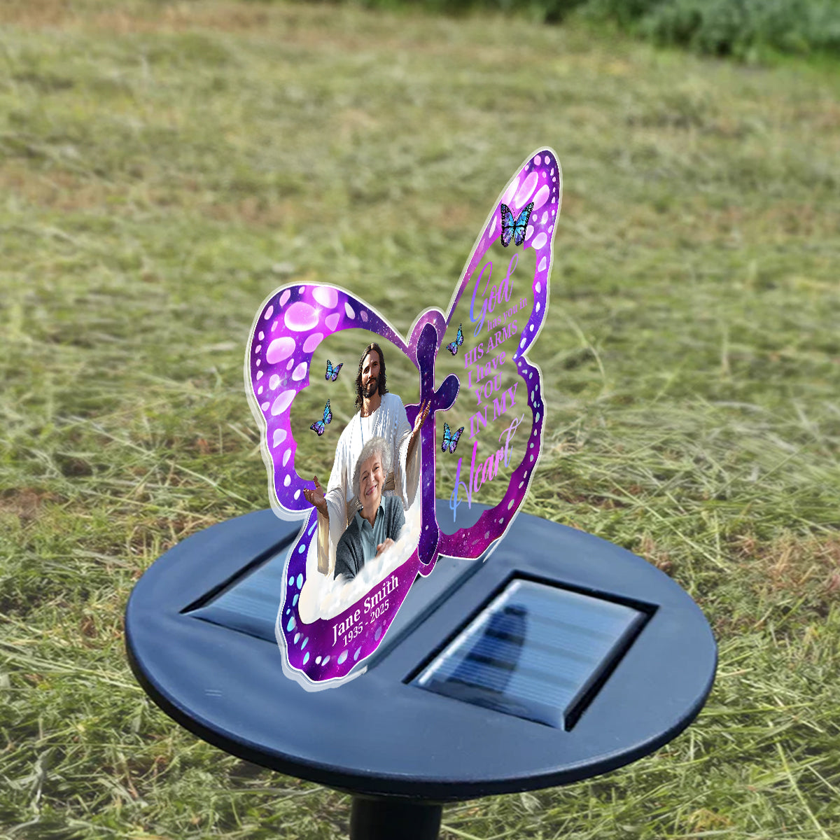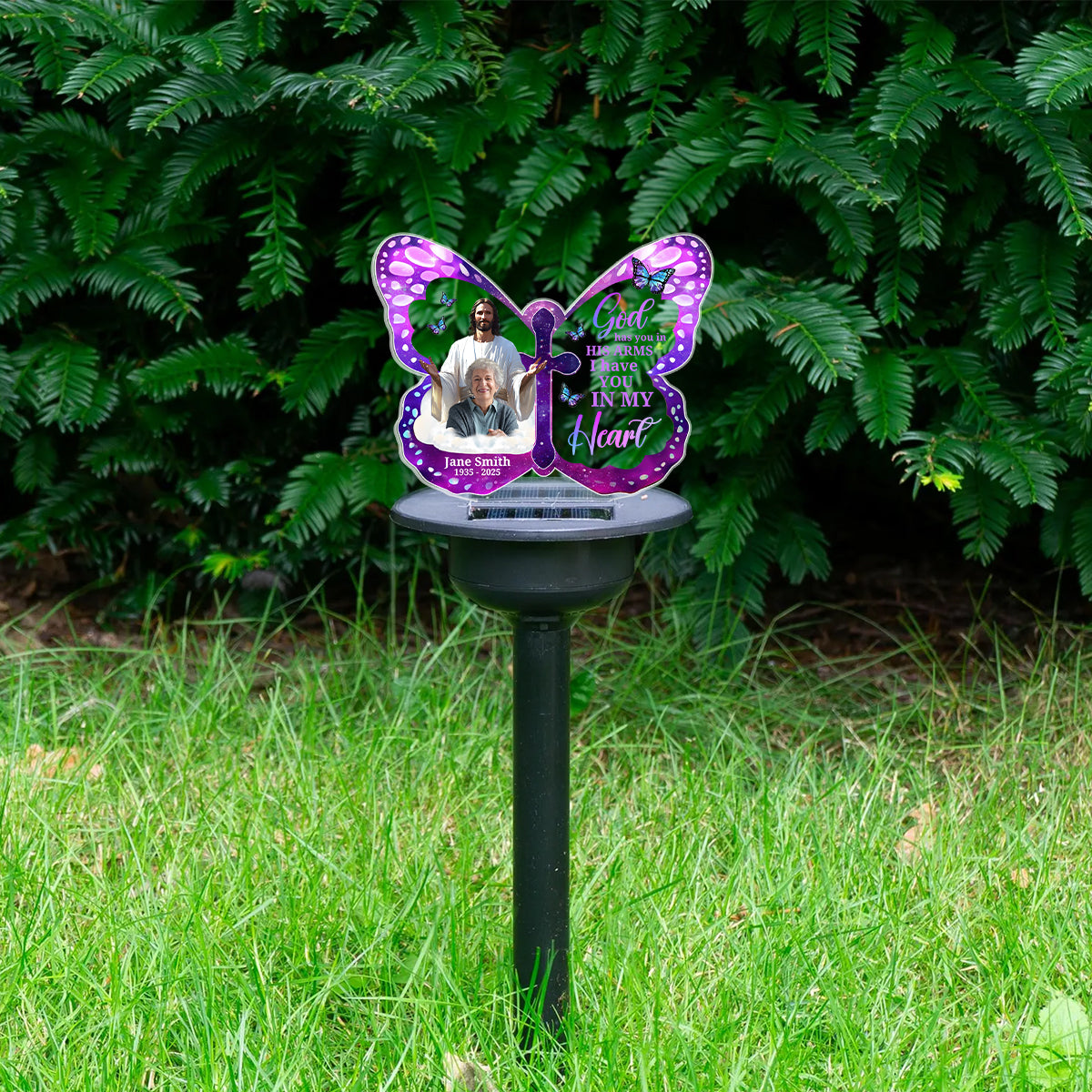 In His Arms Always - Personalized Solar Light