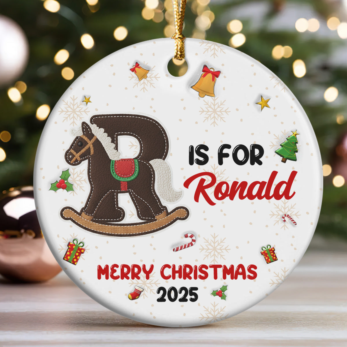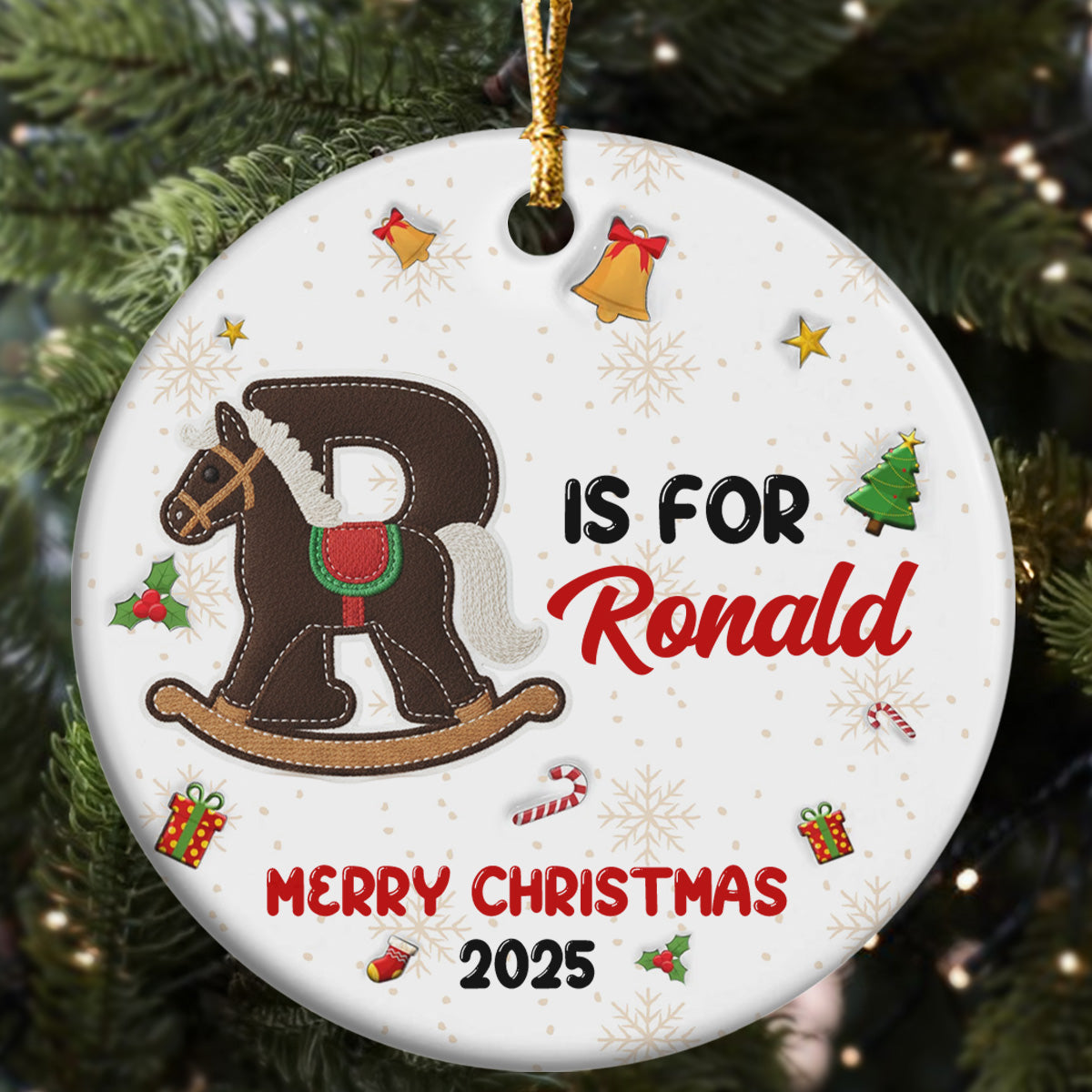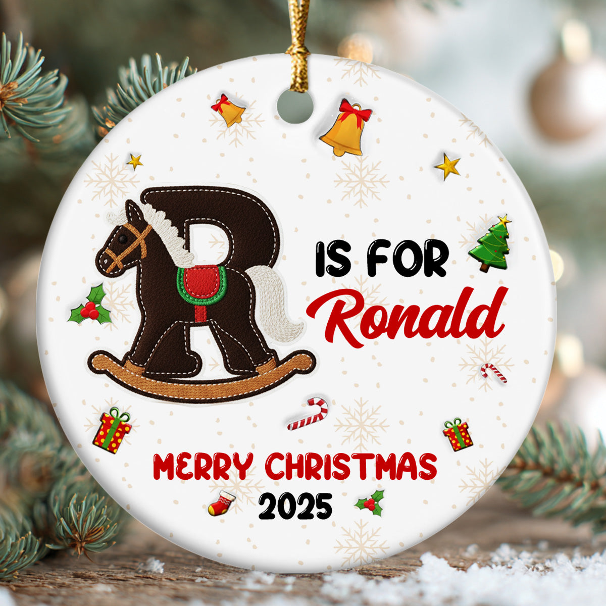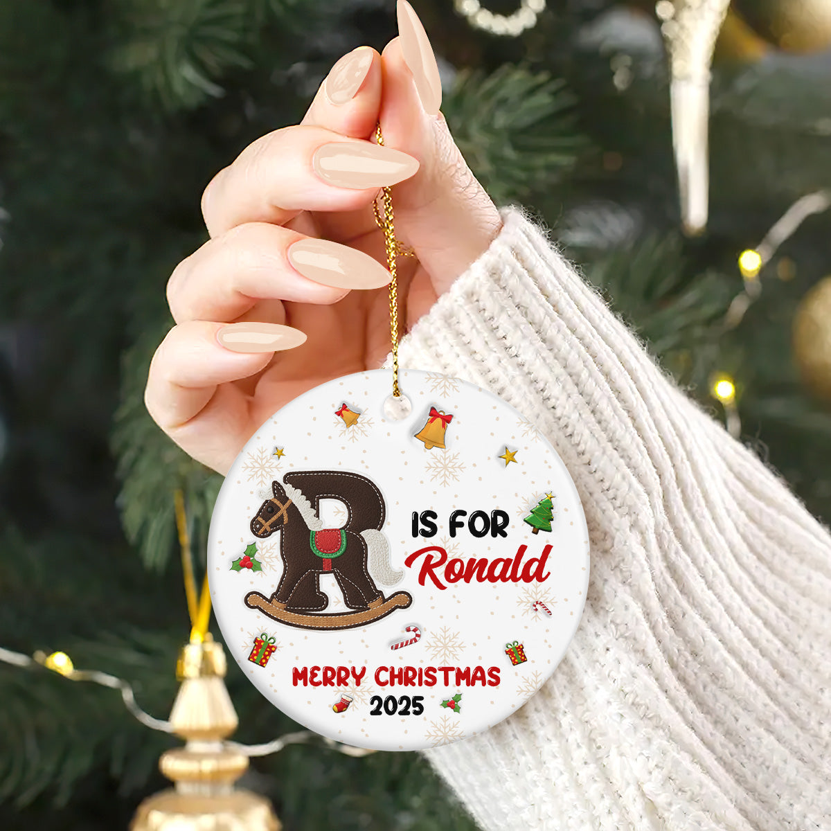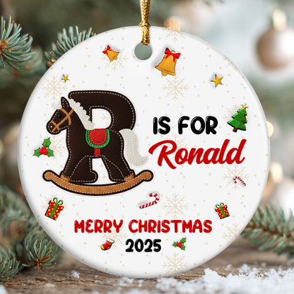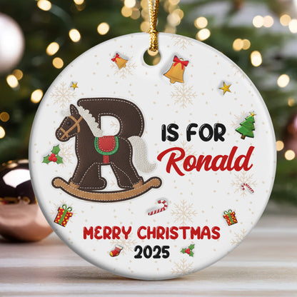 R Is For Reindeer - Personalized Round Shaped Ceramic Ornament