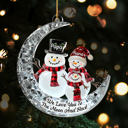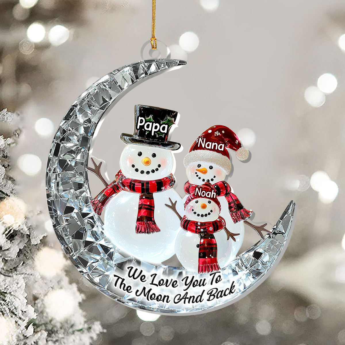 Shimmering Snowman Moon Love - Personalized 1-Layer Acrylic Ornament