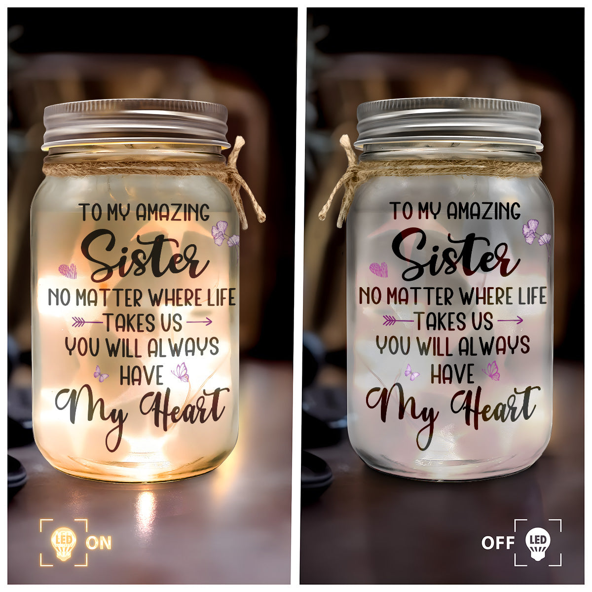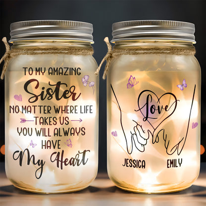 Sister You Will Always Have My Heart - Personalized Mason Jar Light