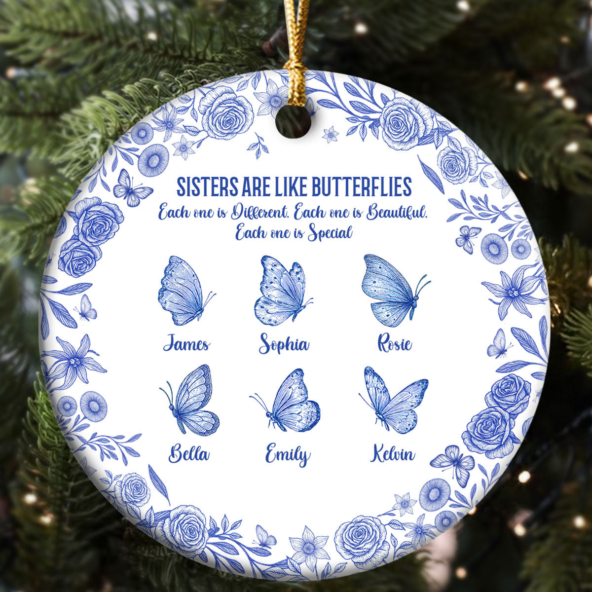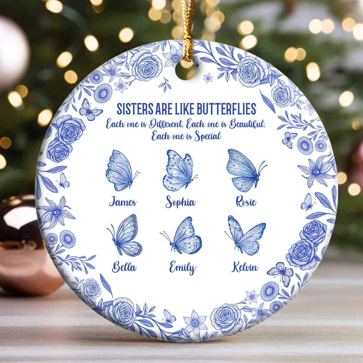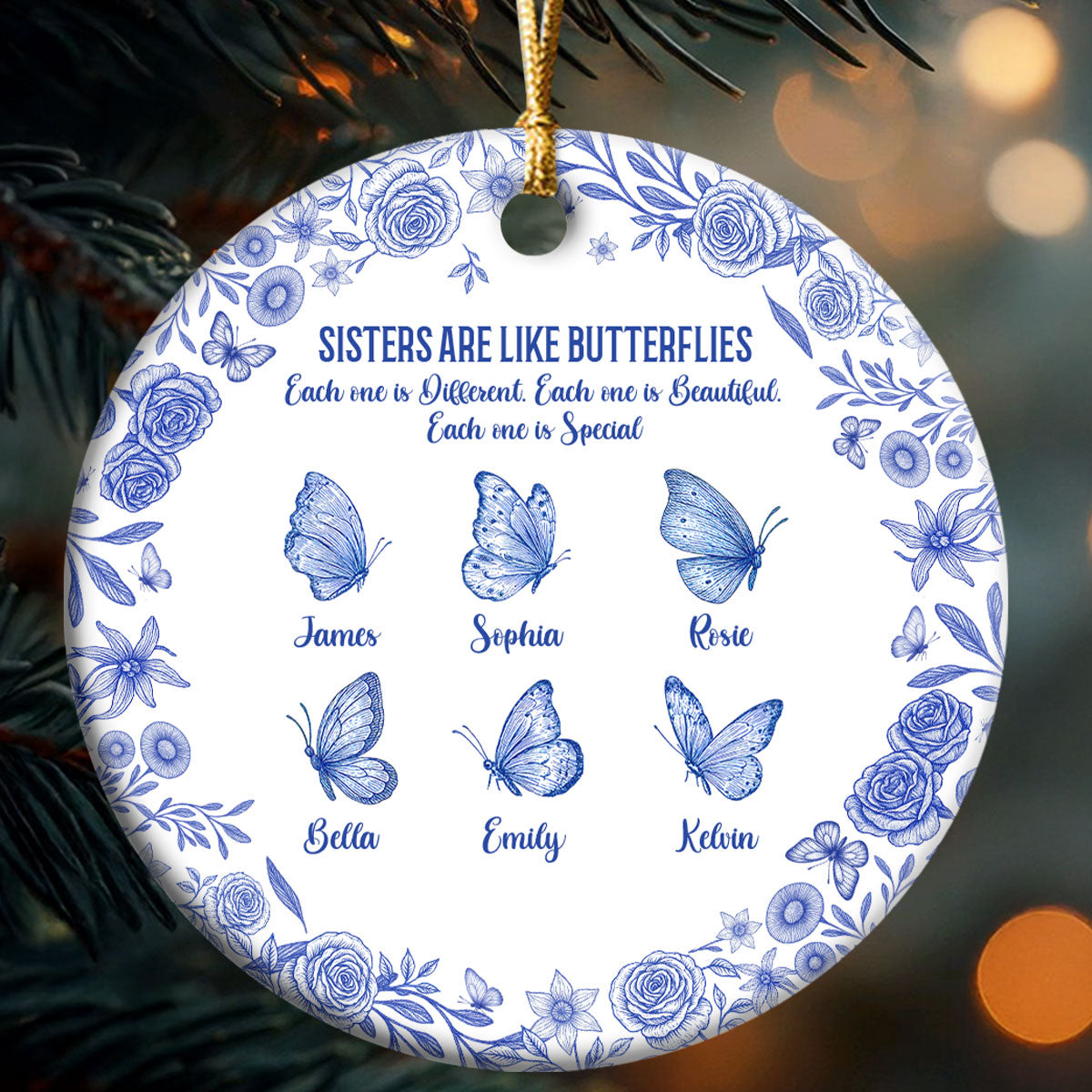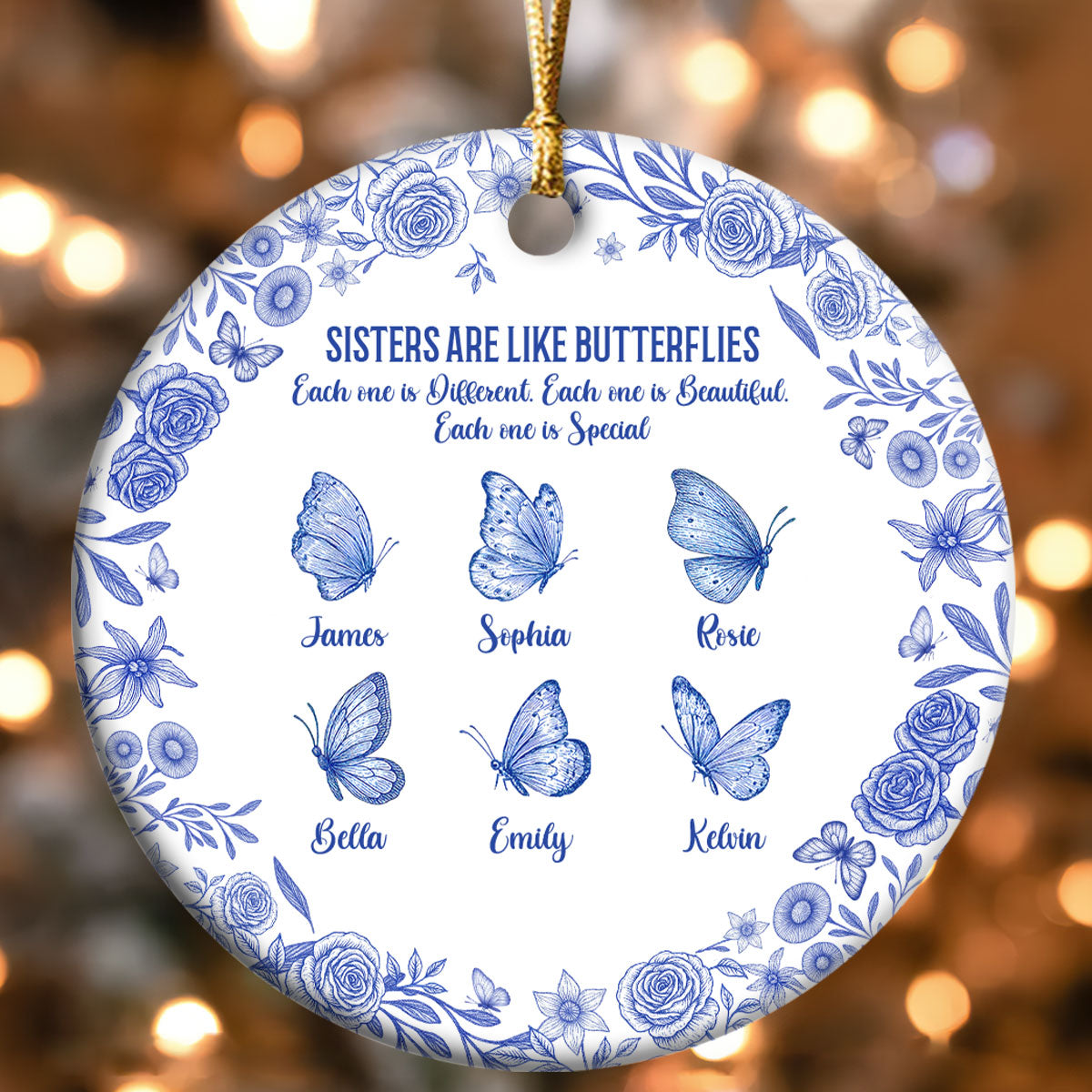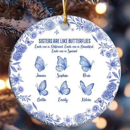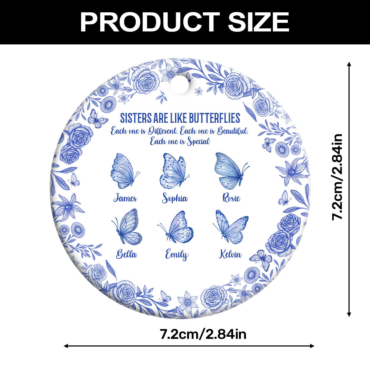 Sisters Are Like Butterflies - Personalized Round Shaped Ceramic Ornament