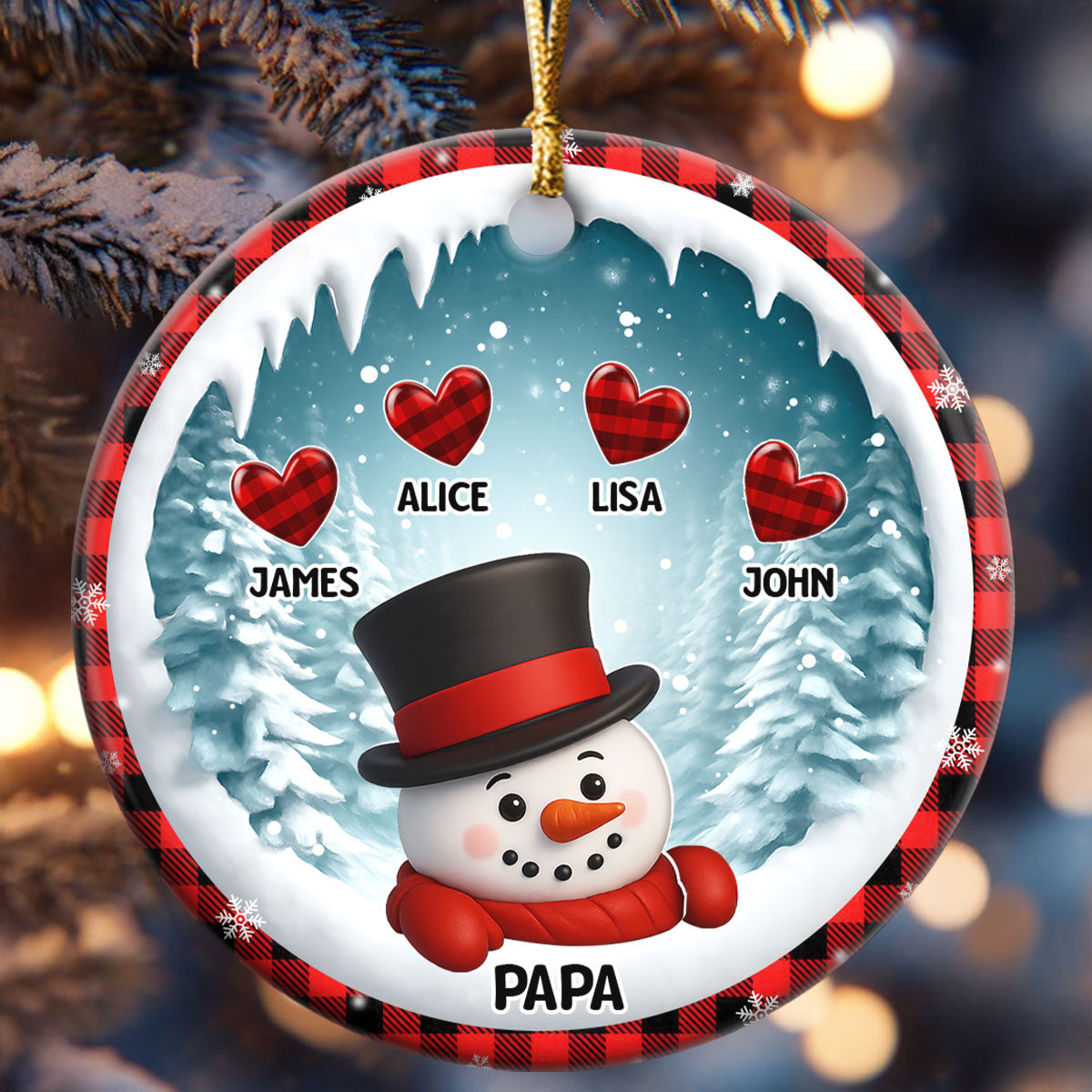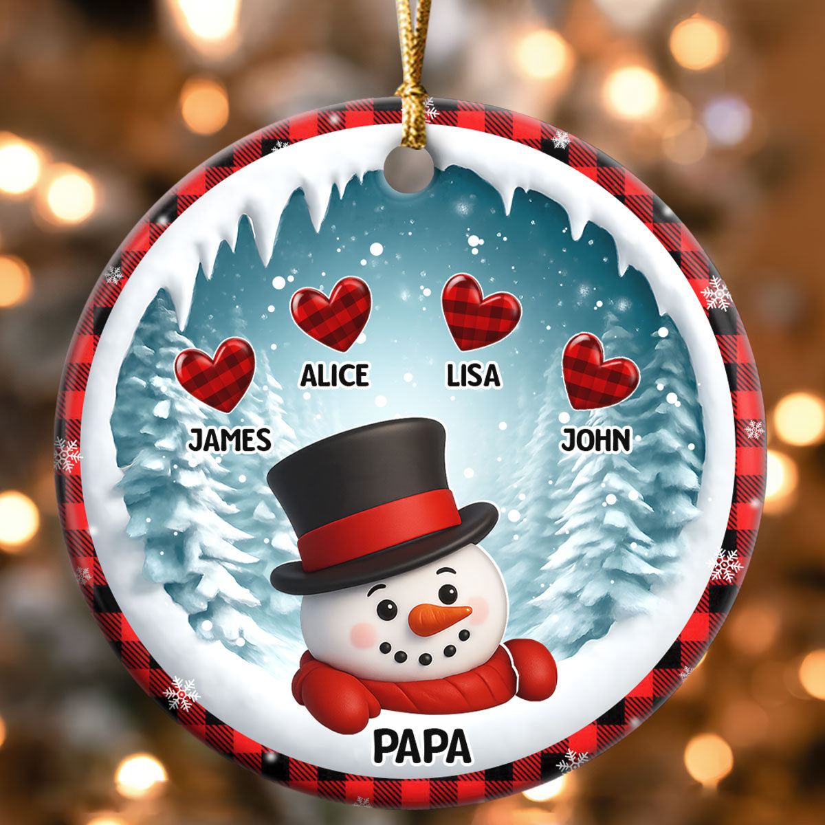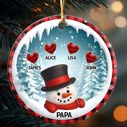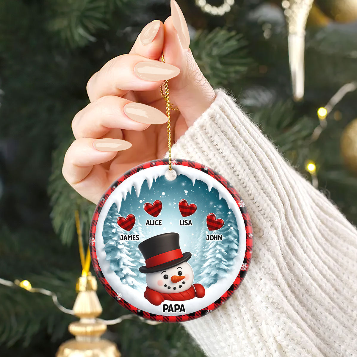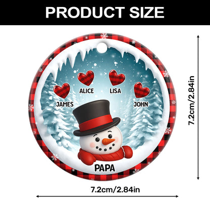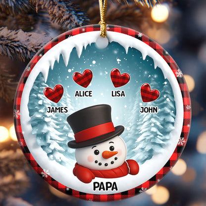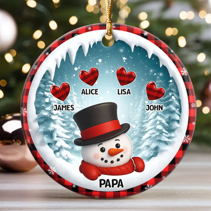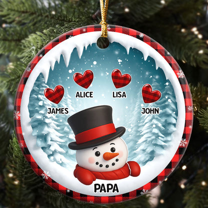 Snowy Grandma And Grandkid Hearts - Personalized Round Shaped Ceramic Ornament